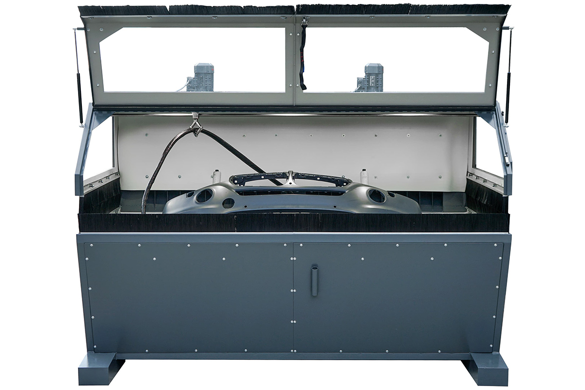 Der Part-Blaster ersetzt das mühsame, händische Anschleifen und bietet eine hocheffiziente Lösung zur Mattierung und Lackvorbereitung verschiedenster Karosserieteile. Ob Stoßfänger, Felgen, Kotflügel, Spiegelkappen oder andere Anbauteile – innerhalb weniger Minuten entsteht eine gleichmäßig matte Oberfläche, die perfekt auf die anschließende Lackierung vorbereitet ist.